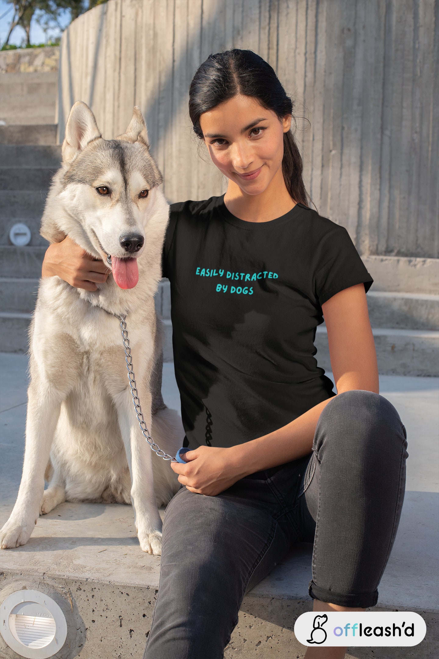 Easily Distracted by Dog Tee for Women | Dog Lover Tee | Dog Mom Tee Gift | Dog T-Shirt | Funny Dog Owner Graphic Tee | Dog Shirt for Women