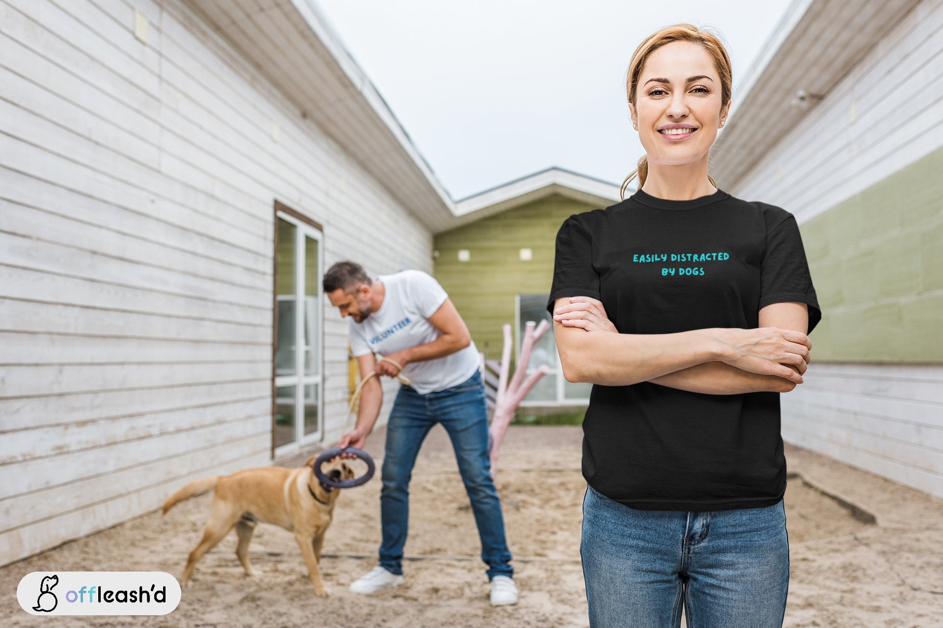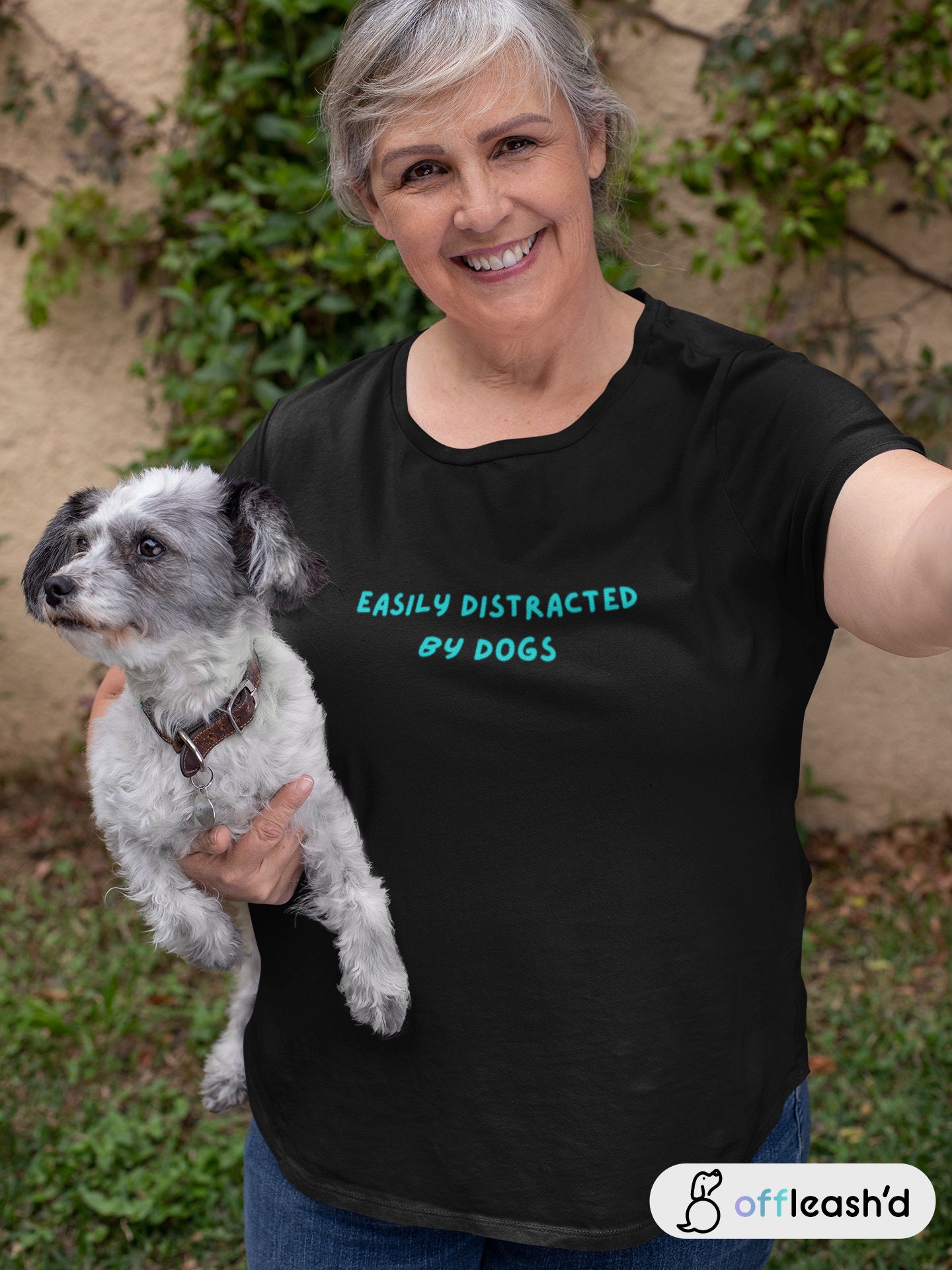 Easily Distracted by Dog Tee for Women Dog Lover Tee Dog Mom Tee Gift Dog T-Shirt Funny Dog Owner Graphic Tee Dog Shirt for Women