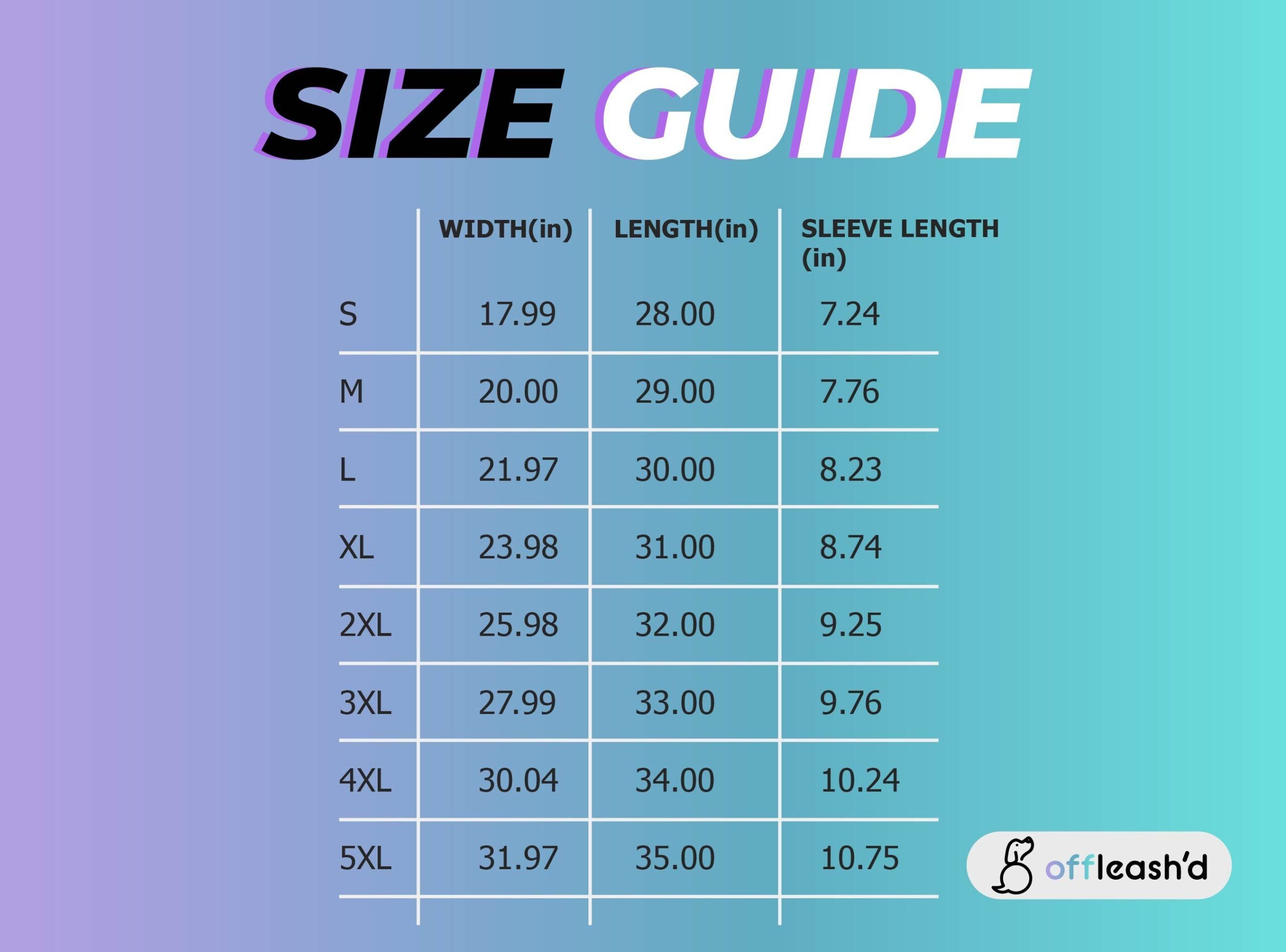 | Sizes | S, M, L, XL, 2XL, 3XL, 4XL, 5XL |