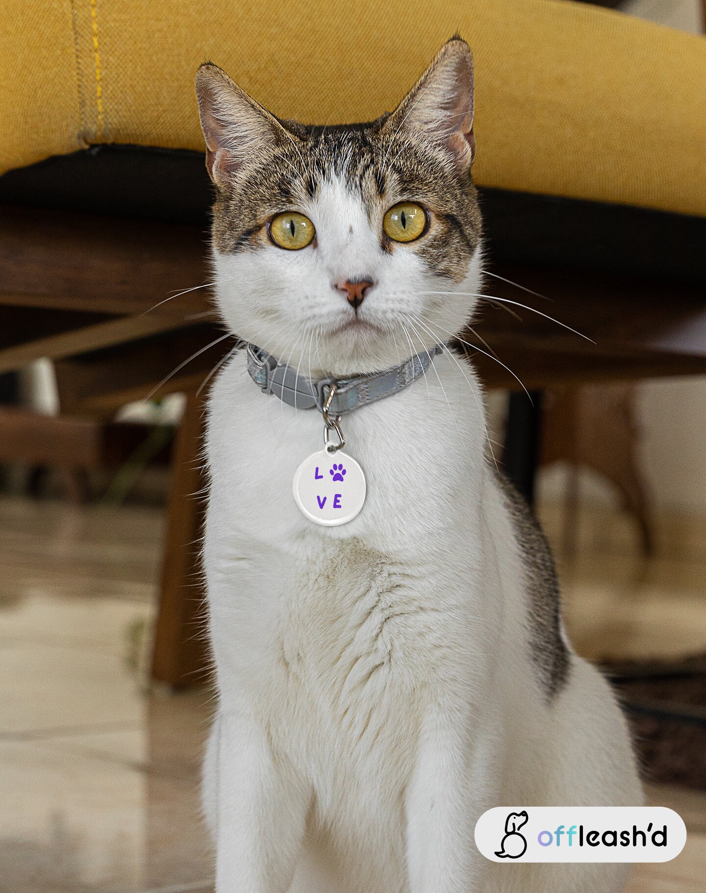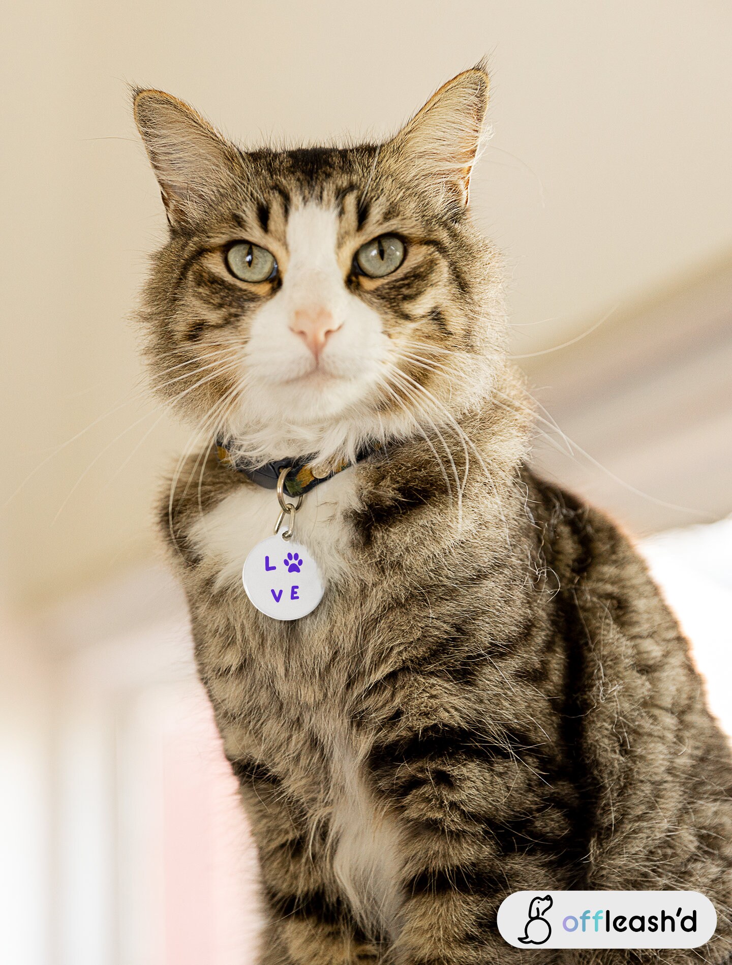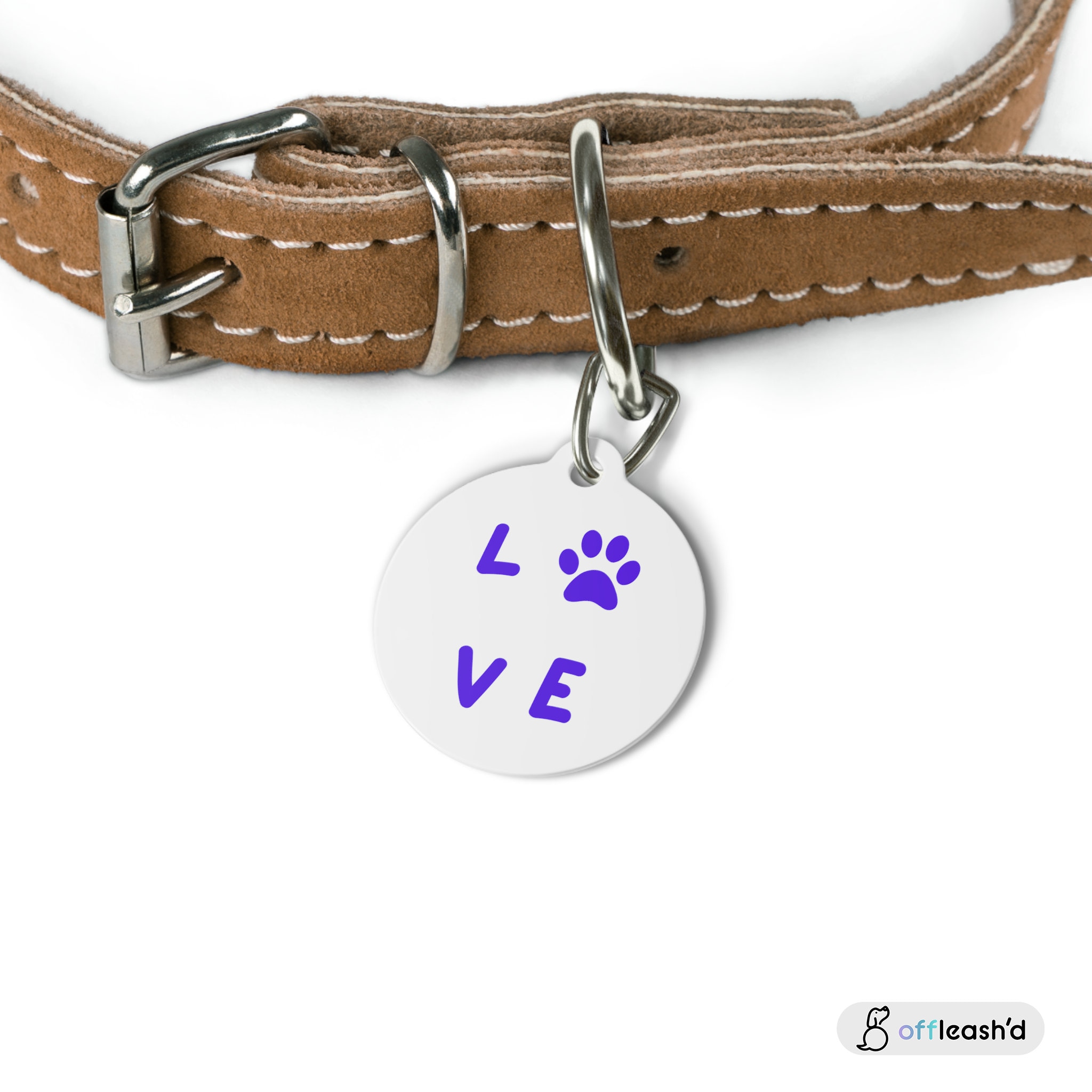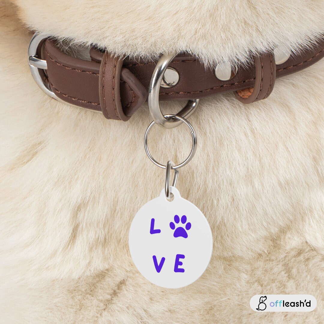 Paw Print Pet Tag | Pet PAW Love Collar Dog for Dogs and Cats | Dog ID Tag | Cat ID Tag | Pet Tag Gift | White Coated Solid Metal Pet Tag